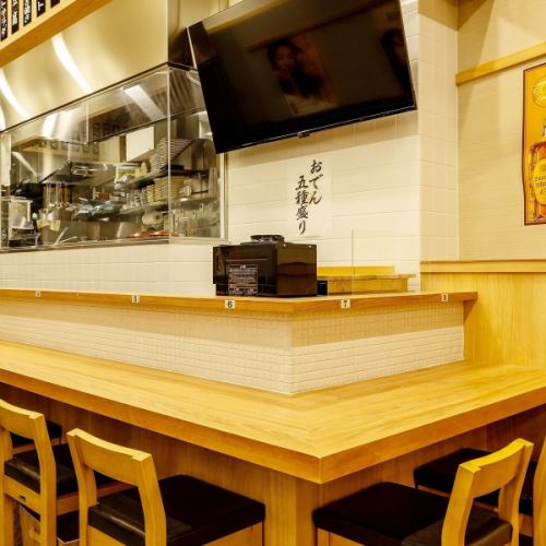 チョイ呑みにぴったり♪お一人様や少人数でも気軽にお食事できるL字カウンター。